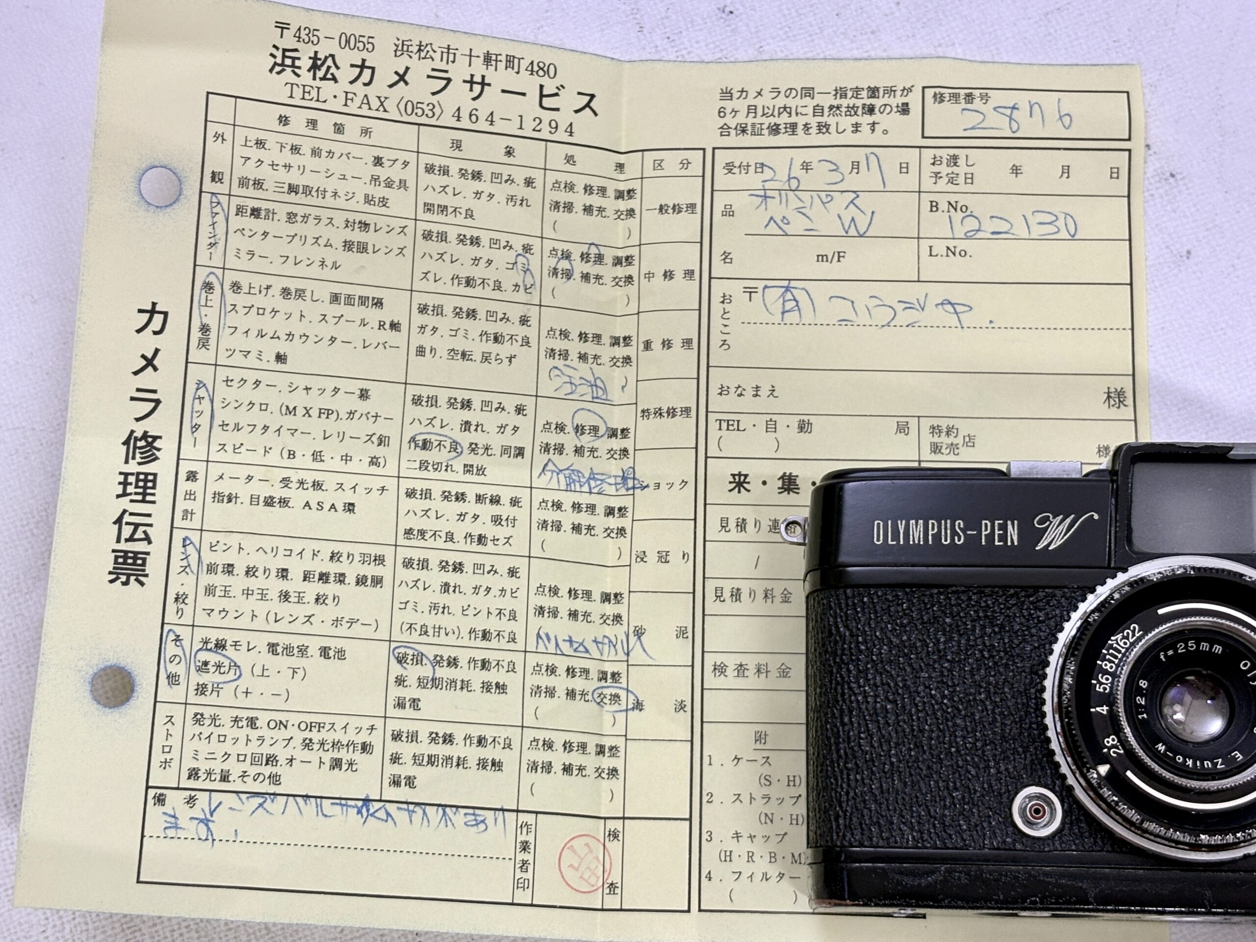 修理完成:オリンパス•ペンW