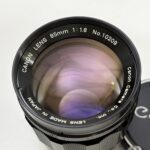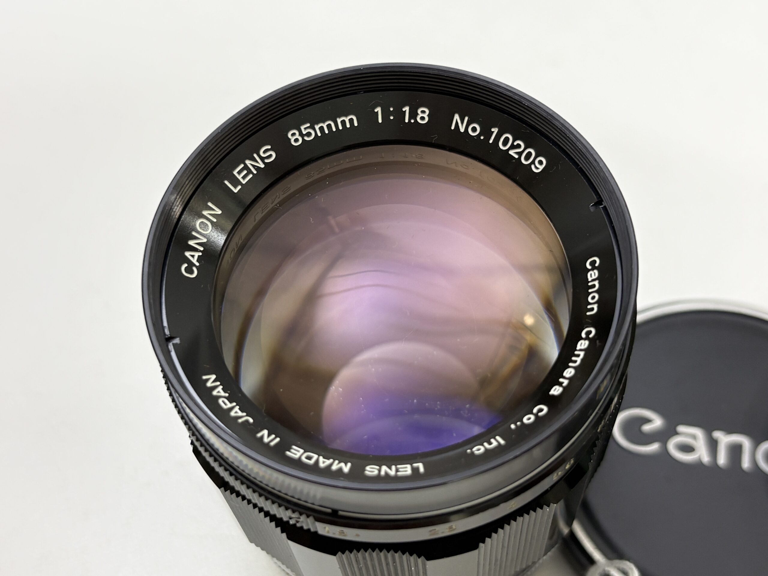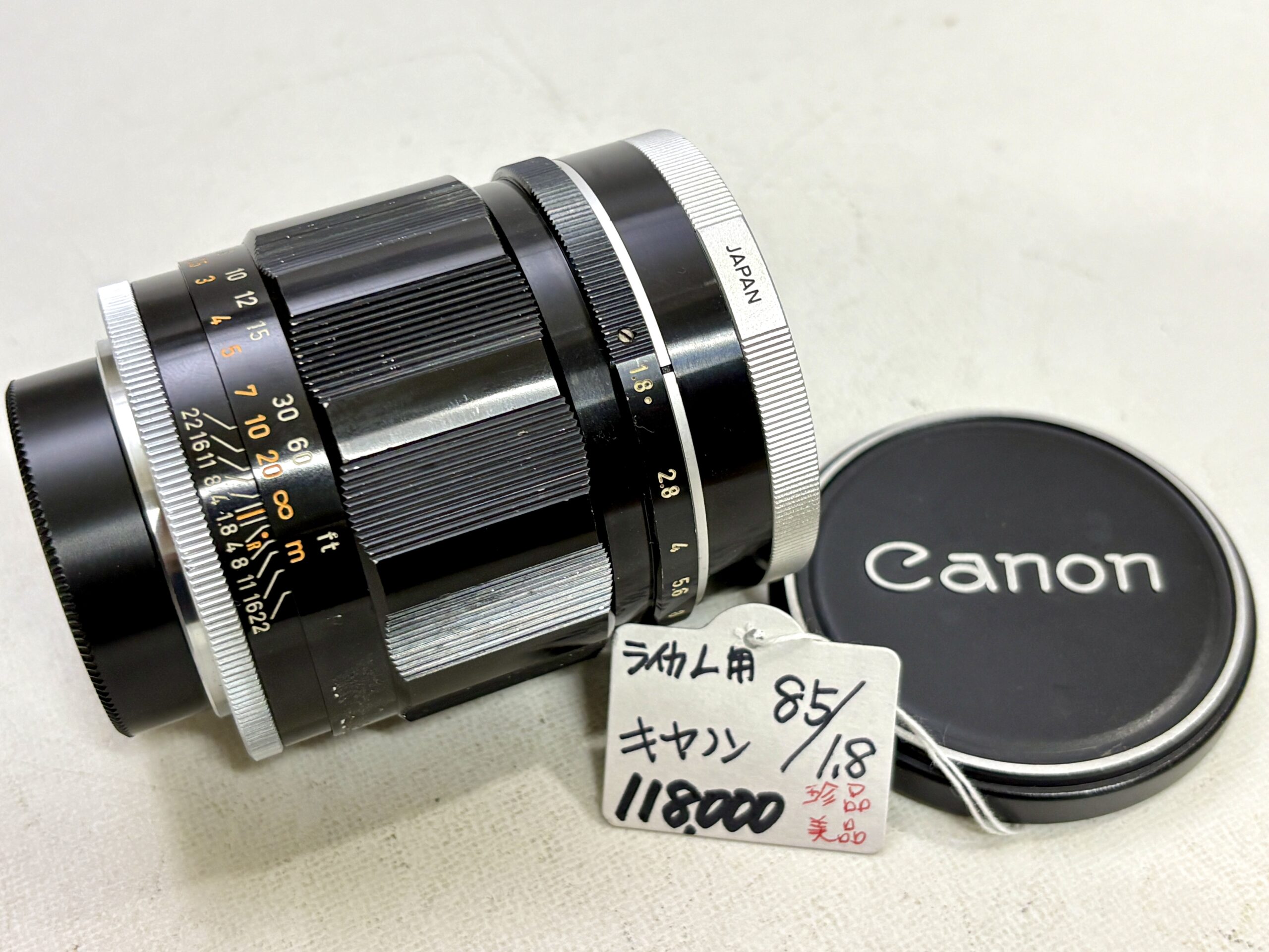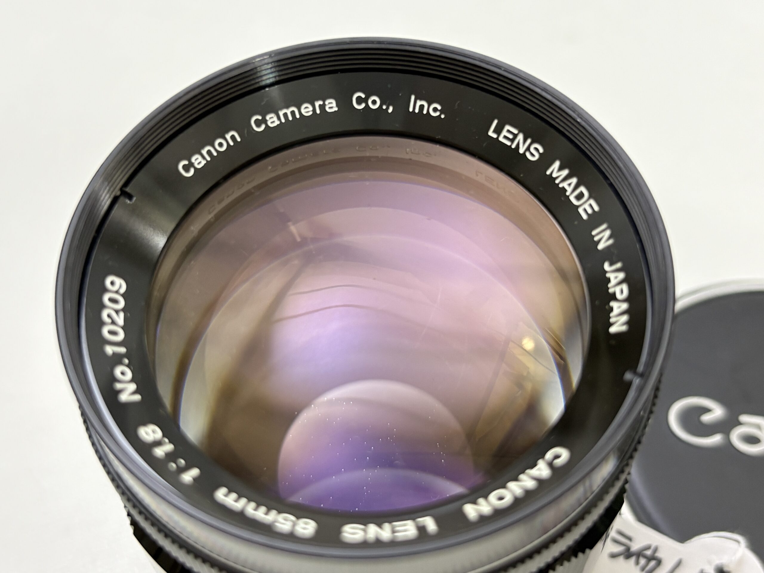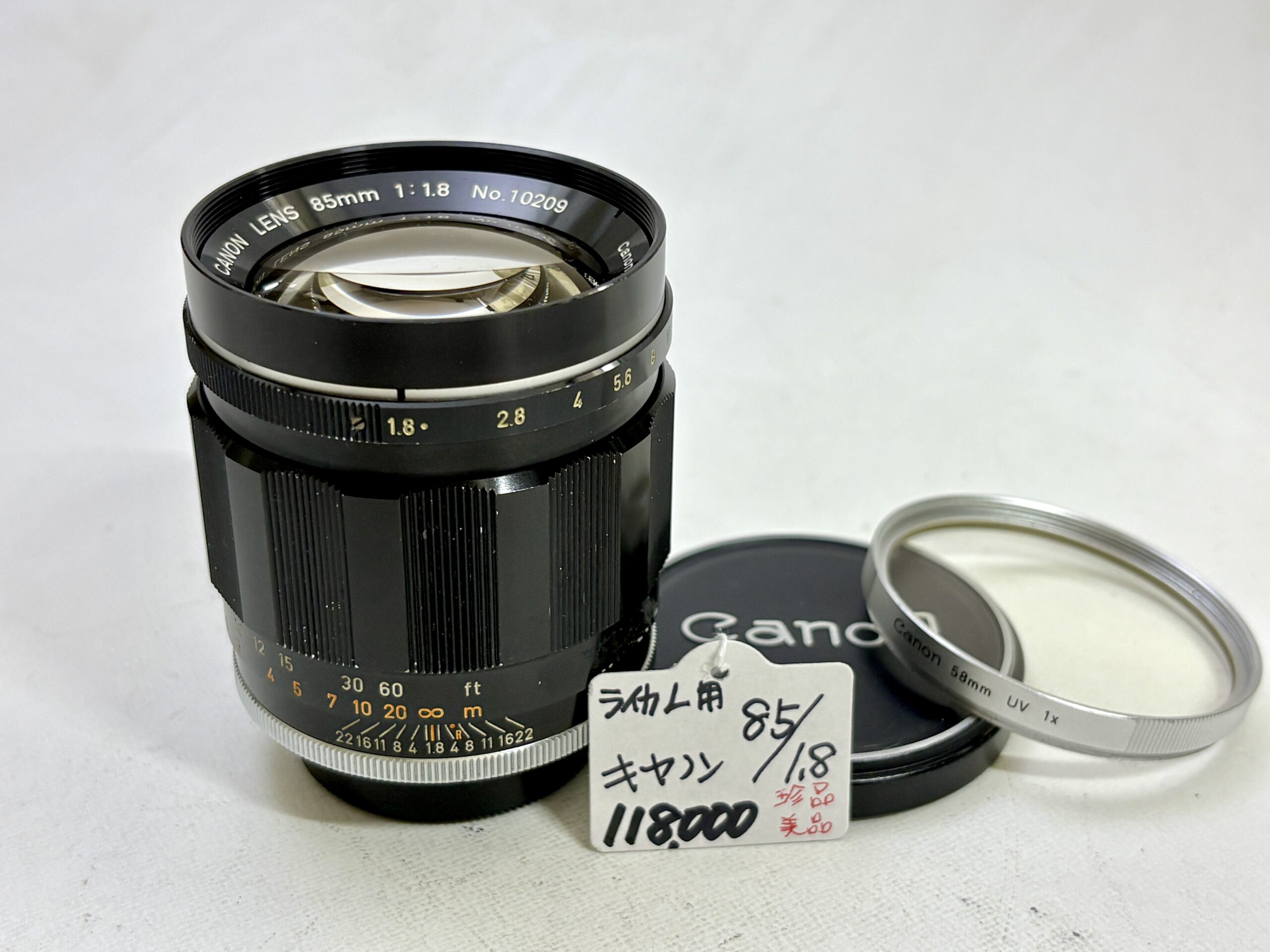 1961年発売、4群5枚構成、です。L39スクリューマウント用のキヤノン85mmレンズは…セレナー銘時代の85/2からキヤノン銘の85/1.9(1型2型と有り)が4群6枚構成で有りましたが~枚数を1枚減らして明るく改良されてます。1961年といえばキヤノン7型と同年発売です、もうこの頃にはニコンF(1959年発売)もキヤノンフレックスも発売済みで時代は一眼レフへと移行していた頃です。キヤノンレンジファインダー用レンズとしては最終期のモデルになりますので、性能は抜群でしたが…当時あまり売れずに今となっては希少で高価な大口径レンズとなってしまいました。